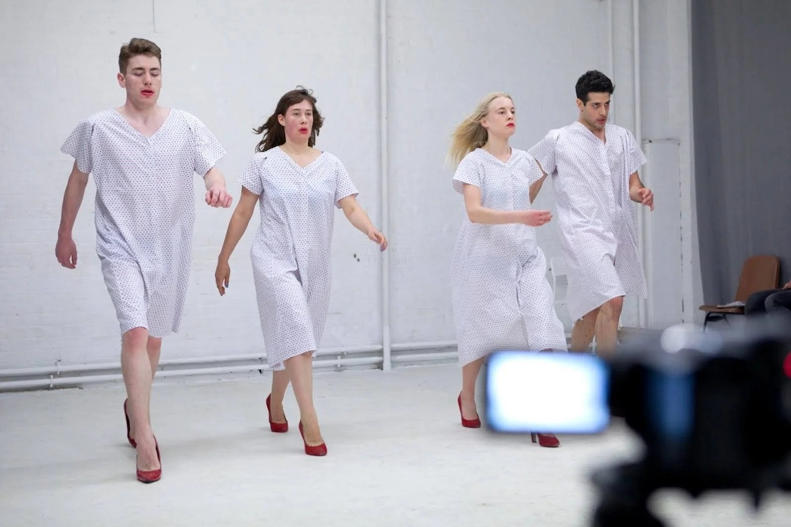 MY NAME IS B is inspired by Hans Christian Anderson’s tale of The Red Shoes and Josef Breuer’s case study of Anna O: the birth of the Talking Cure. The audience is invited to view B on her 21st birthday, as her psychological struggles play out through a never-ending cycle of systematic daydreaming, panic and self-affirmation framed by B’s never-ending march on red high heels.